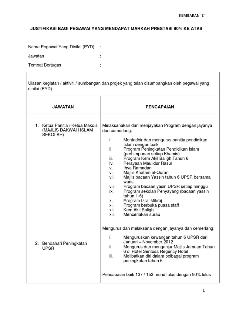 Contoh Borang Jusfikasi Pemberian Markah Prestasi 95 Ke Atas Pengurusan Prestasi Tahunan Dalam Bentuk Power Point 1 Pdf